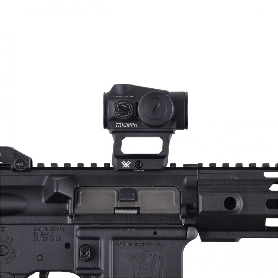 Hammerli TAC R1 22 w zestawie z kolimatorem Vortex Triumph 2 MOA stanowi kompletną platformę treningową dla strzelców sportowych, użytkowników systemu AR oraz osób rozpoczynających pracę z bronią samopowtarzalną. Połączenie lekkiego karabinka bocznego zapłonu z szybkim systemem celowniczym sprawdza się podczas treningu statycznego, dynamicznego oraz rekreacyjnego strzelania na krótkich i średnich dystansach.