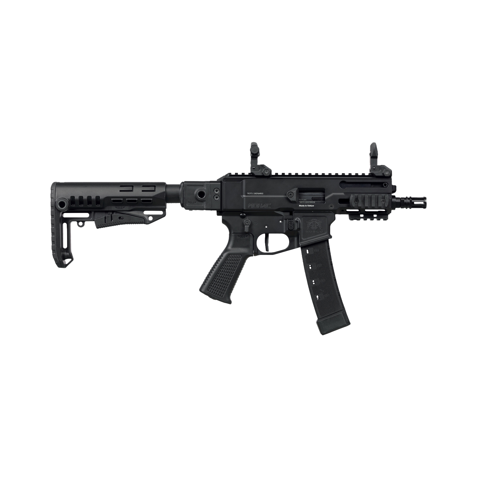 Huglu Mohac 4.8″ to kompaktowy pistolet maszynowy (PCC) kalibru 9×19 mm w wersji z 4.8-calową lufą i wykończeniem w kolorze BLACK. Zaprojektowany jako lekka, modułowa platforma treningowo-sportowa, łączy prosty system działania (simple blowback, zamknięty zamek) z ergonomią dostosowaną do montażu akcesoriów w standardzie AR/Picatinny oraz M-LOK. Mohac akceptuje magazynki kompatybilne ze Scorpion EVO3+, oferuje składaną kolbę w standardzie AR oraz rozbudowane opcje montażowe — gotowy do szybkiego dostosowania pod własne preferencje.