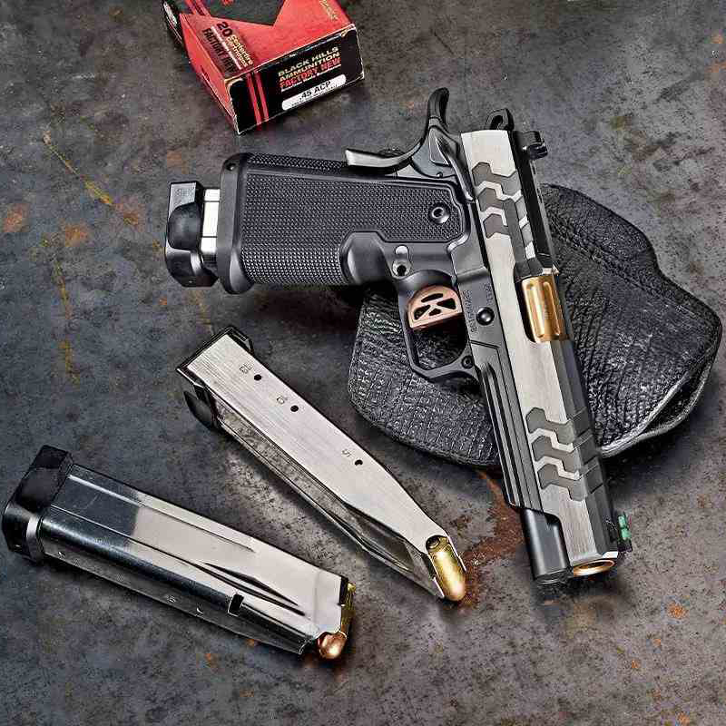 Konstrukcja oparta na stalowym zamku i szkielecie (z modułowym chwytem o podwójnym rzędzie magazynka) zapewnia doskonałą kontrolę odrzutu oraz szybki powrót na cel. Mechanizm spustowy typu single action oferuje krótki reset i czyste, przewidywalne przełamanie, co przekłada się na wysoką dynamikę i powtarzalność strzałów. Wersja OR umożliwia bezpośredni montaż optyki, zwiększając możliwości konfiguracji pod kątem strzelectwa dynamicznego i sportowego.