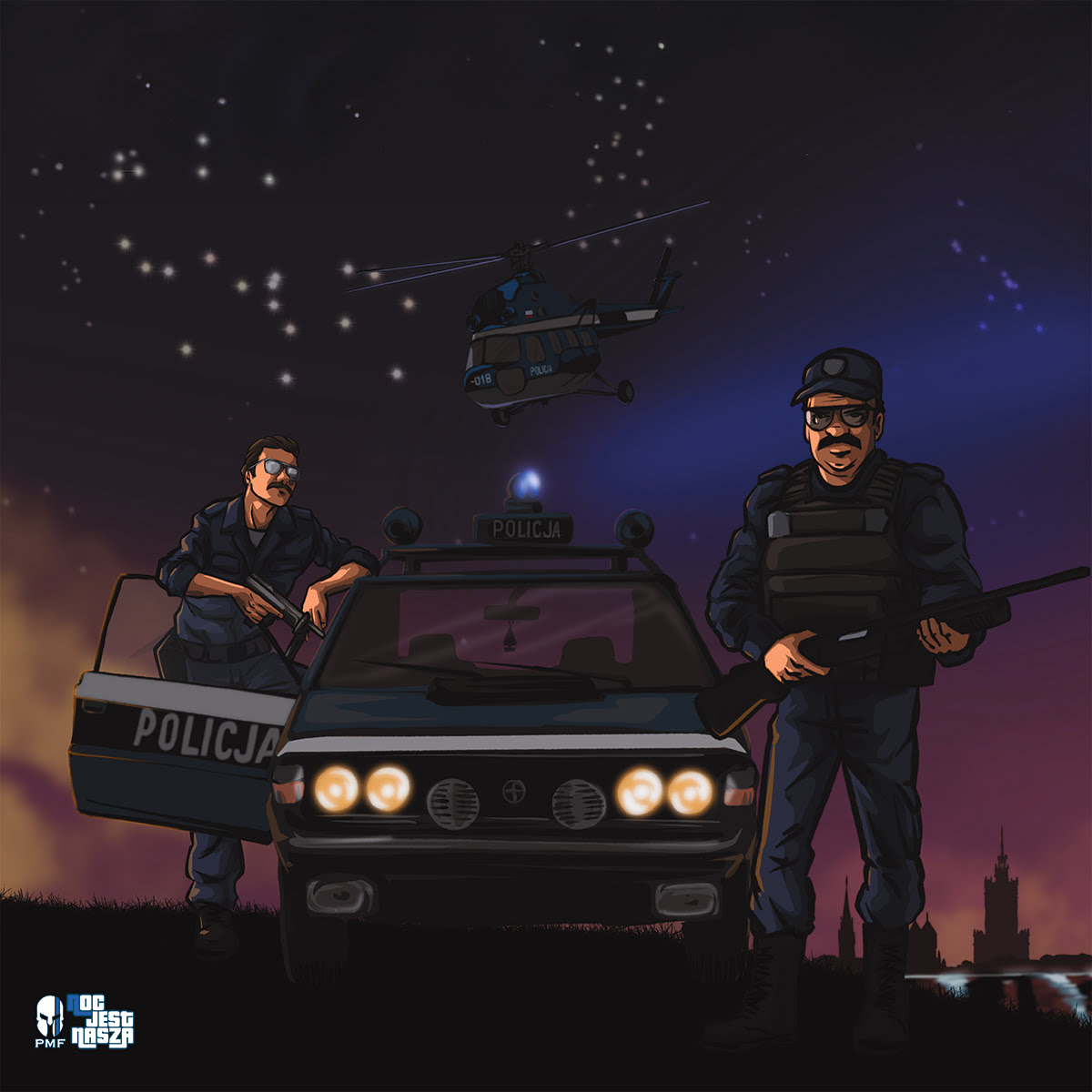 PMF – T-shirt “Back to the OLDschool” to koszulka stworzona z myślą minionej „epoce” lat 90. To właśnie wtedy wojnę o wpływy toczyły miedzy sobą grupy przestępcze, a do walki z nimi zostali wysłani policjanci, którzy za marne grosze narażali się każdego dnia w nierównym boju. To przed nimi chylimy czoła, przed tymi którzy mimo wszystko walczyli każdego dnia, mimo braku sprzętu, pięniędzy i perspektyw na lepsze jutro. Przed tymi którzy nadstawiając karku obijali ryje gangusom, zamiatali nimi chodniki, rozganiali stadionową bandytkę, tak, by zwykli obywatele mogli bez obaw chodzić po ulicach. Bycie policjantem w tamtych czasach było nie lada wyzwaniem. To własnie ci starzy, bezkompromisowi wyjadacze ukształtowali kolejne pokolenia. Ta koszulka to nasze podziękowanie dla ich ciężkiej roboty i dla nich samych.