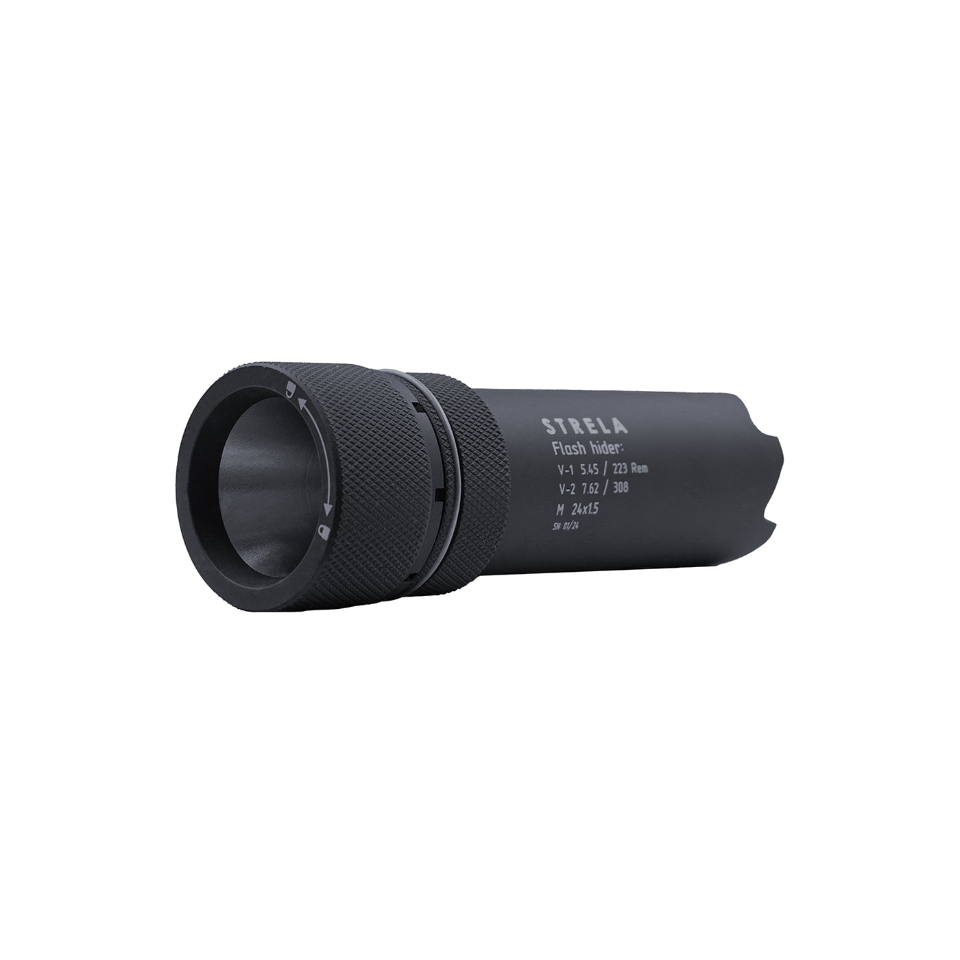 Tłumik płomienia/Flash hider gen. 2 został wyprodukowany przez ukraińską firmę Strela. Tłumik przeznaczony jest zarówno do karabinków platformy AK, jak i AR posiadających gwint 24×1.5, w kalibrze 7.62/.223Rem/5.45 w zależności od zastosowanego lejka, tj.