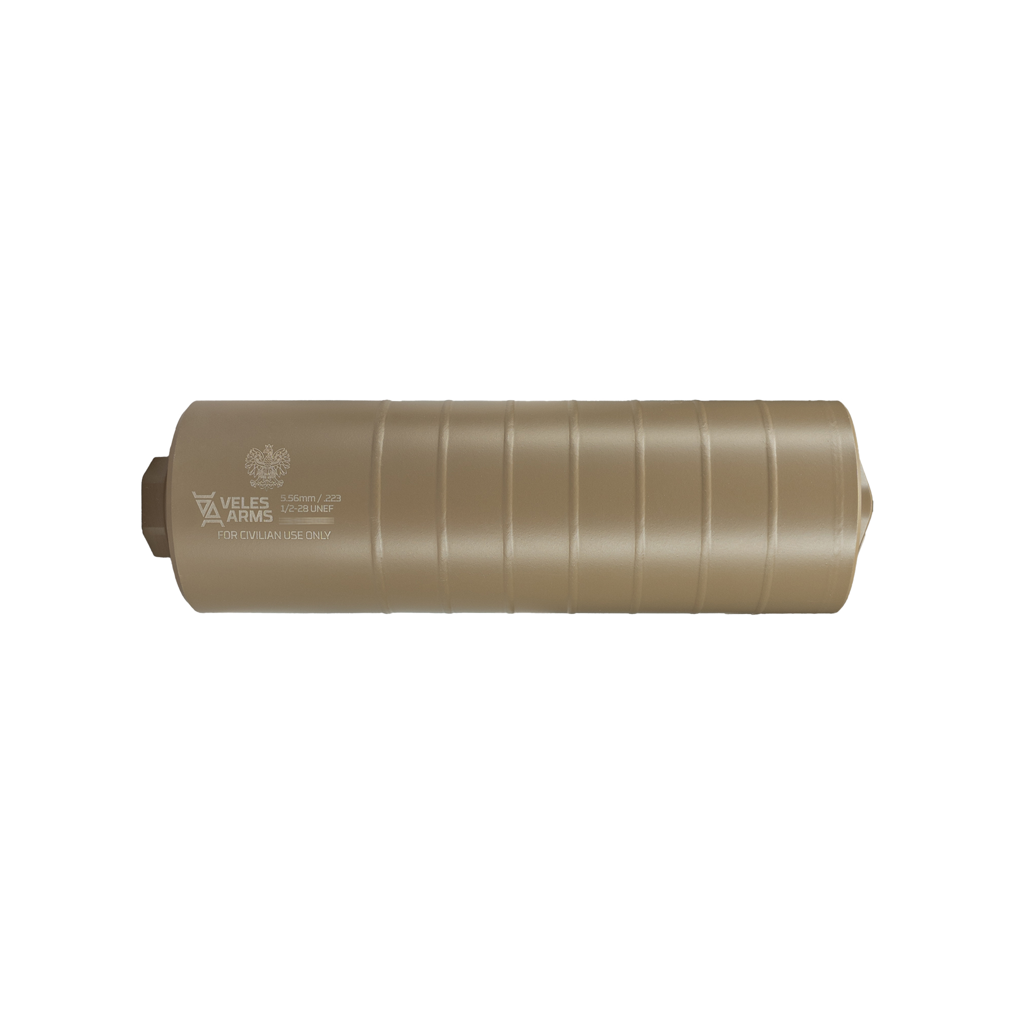 Tłumik Veles Arms Veles-223 1/2-28 UNEF GEN. 2 FDE to nowoczesny tłumik dźwięku zaprojektowany do broni w kalibrze .223 Rem / 5.56×45 mm NATO. Druga generacja konstrukcji (GEN. 2) została opracowana z myślą o poprawie kultury pracy broni, skutecznej redukcji hałasu oraz zwiększeniu komfortu strzelania podczas treningów i strzelań sportowych.